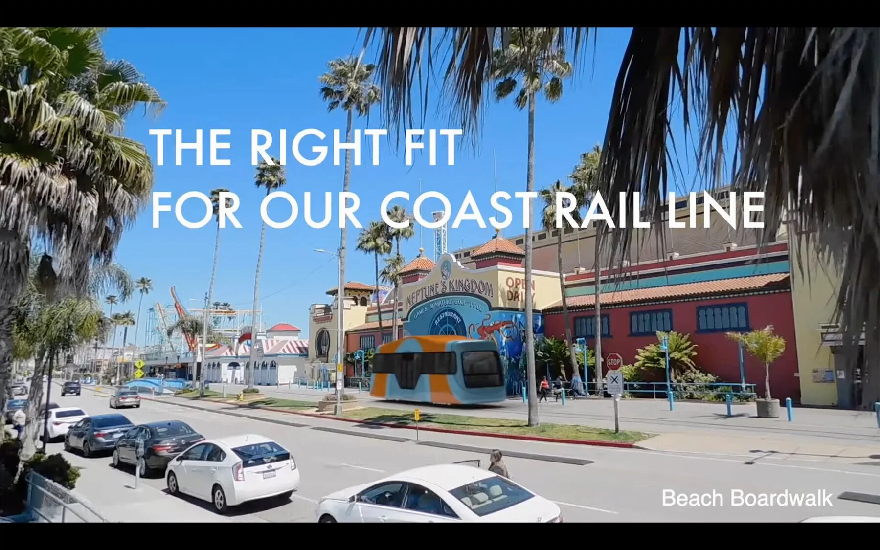 The Coast Futura demonstration was produced with support from a collaboration that included local volunteers, Roaring Camp Railroads and TIG/m, a California-based company. The TIG/m system would cost one-quarter of the cost estimated by the SCCRTC’s 2019 Unified Corridor Investment Study and the Transit Corridor Alternatives Analysis. The system has the potential to be self-sustaining without increased taxes. The system would be fully compatible with the multiple uses envisioned for the Santa Cruz Branch Line, including the bicycle and pedestrian trail already under construction. Fares would be comparable to current METRO fares.